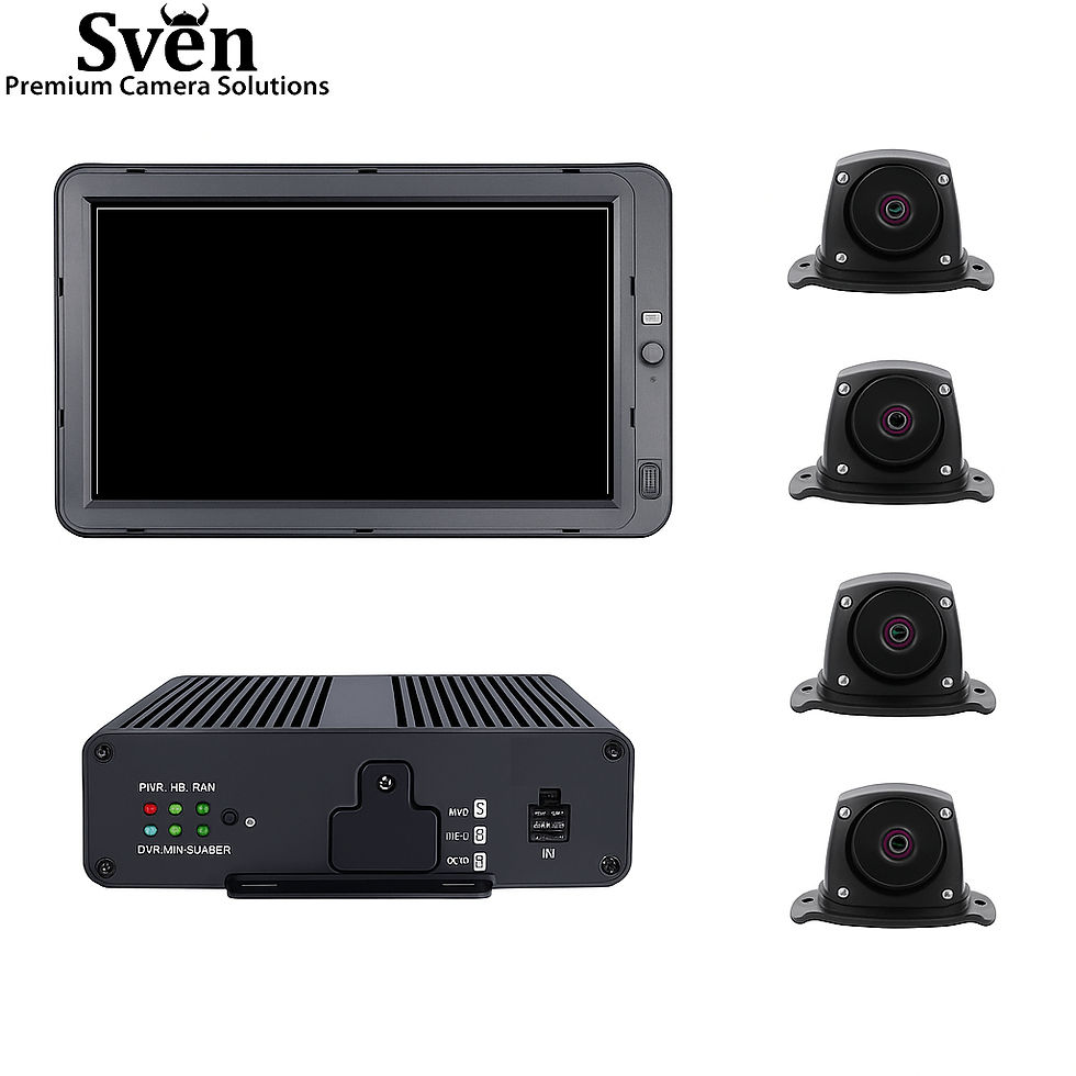 Brigade voor- & achteraanzicht camerasysteem, bestaande uit: monitor, IR-camera's en bekabeling.